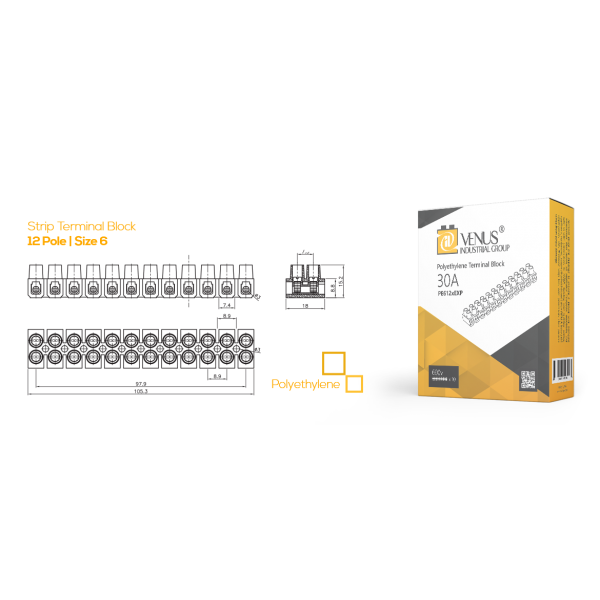 ترمینال برق 12 خانه سایز 6 پلی اتیلن