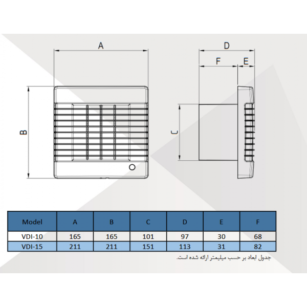 این هواکش با دبی m3/h ( 300) برای اتصال به کانال به قطر mm (150) و یا تخلیه آزاد استفاده می شود. نصب موتور به بدنه پلاستیکی باعث شده تا صدای محصول کاهش یابد. این محصول با استفاده از پلاستیک تزریق شده ساخته شده، به اتصال ارت مجهز بوده و ولتاژ کاری آن 220V-50Hz است. همچنین موتور مورد استفاده در این محصول کلاس B است و این هواکش مجهز به دمپر اتوماتیک الکتریکی است که پس از روشن کردن فن به آرامی باز می شود. این محصول برای کار در محیط هایی با دمای تا 40 درجه سانتی گراد مناسب است. هواکش های VDI برای تهویه فضاهای کوچک طراحی شده اند.