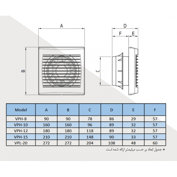 از دسته هواكش هاي آكسيال خانگي و طراحي شده براي فضاهاي كوچك و متوسط در پنج سايز و مدل متفاوت