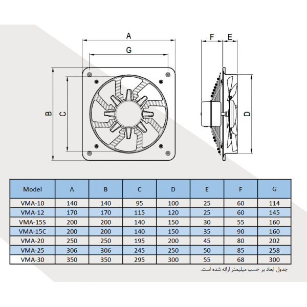 از دسته هواكش هاي آكسيال خانگي و طراحي شده براي جابجايي هواي تازه در 6 سايز و 9 مدل متفاوت